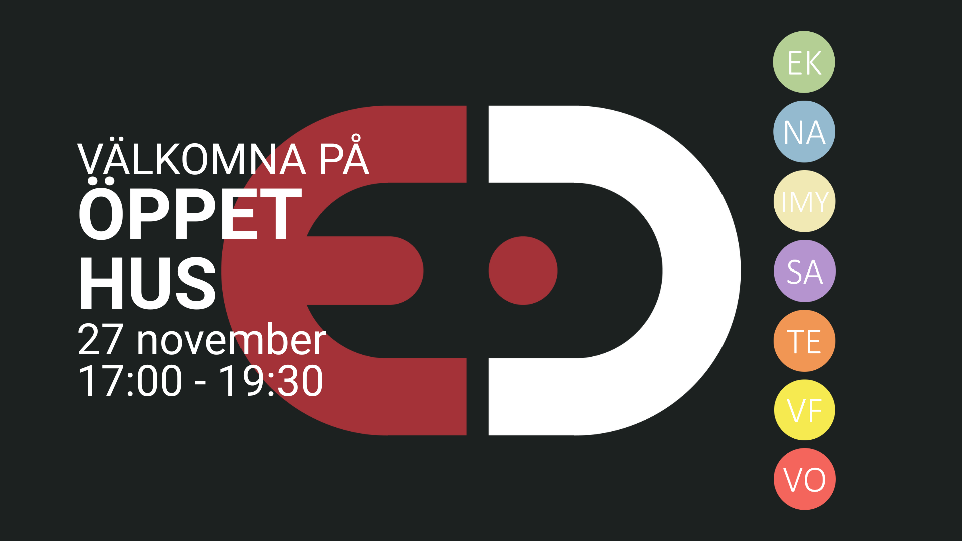 För att göra ett bra gymnasieval är det viktigt att du förbereder dig väl genom att skaffa dig så mycket information som möjligt om de olika alternativen. Vi på ED vill gärna vara ditt nästa steg för din framtid och finns här för att hjälpa dig på vägen, både till valet och under tiden du går hos oss. Under kvällen kan du lyssna på presentationer om våra program, träffa lärare och elever och få en bild av hur det är att gå på ED.
